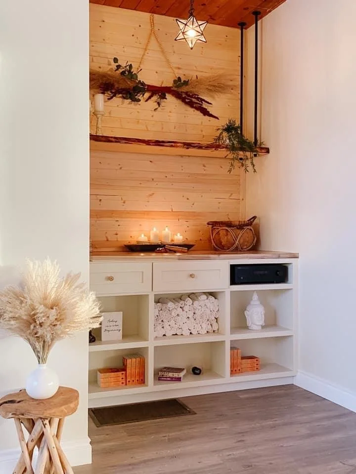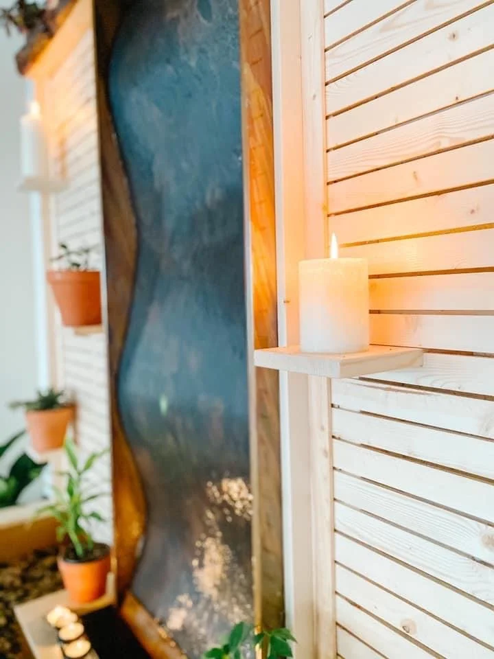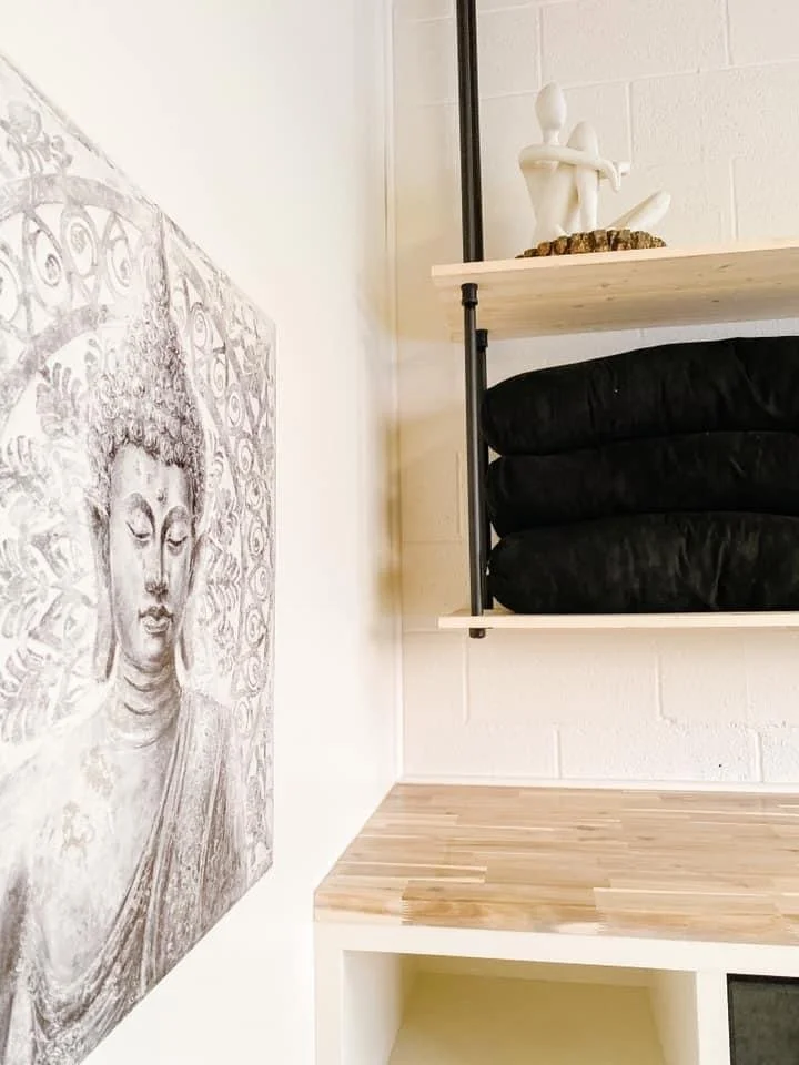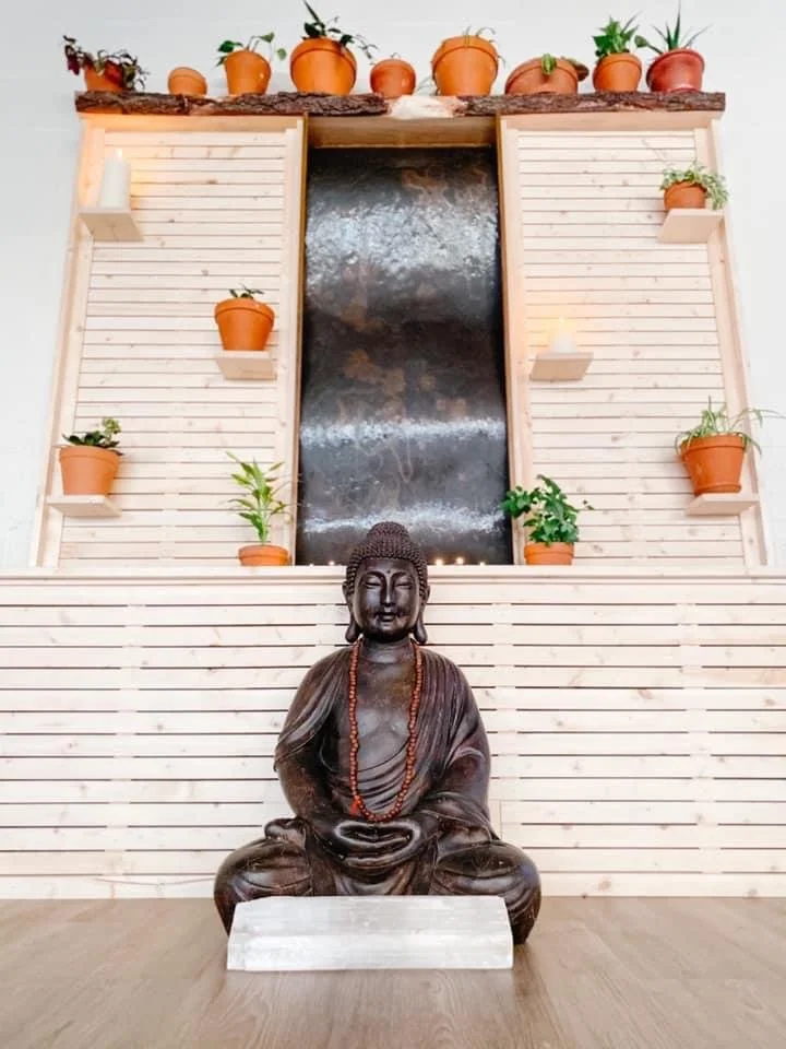 We wanted our yoga space to evoke feelings of tranquility, bliss and connection for both students and teachers. A place to just breathe and just be. An environment where students can feel safe to relax and be fully immersed with their practice. The connection to nature was important for us so a custom water fountain was created. The boho theme mixed with the natural light and calm colours gives the studio ultimate zen vibes. Come feel it for yourself!